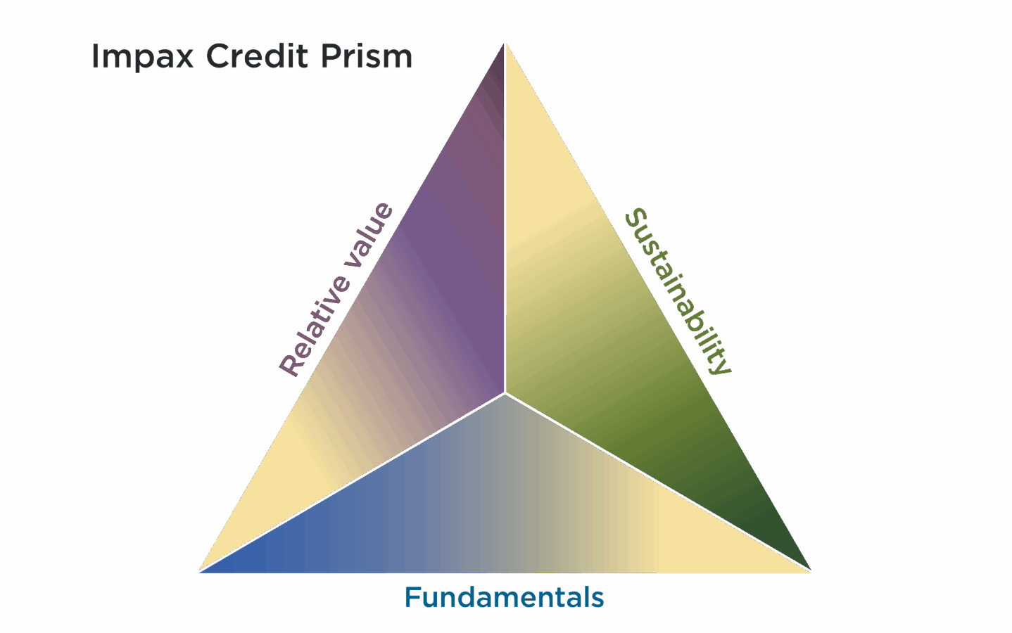 The Impax Credit Prism focuses on three key tenets to generate alpha through strong credit evaluation and selection. Our approach combines deep fundamental credit research, an assessment of relative value complemented by quantitative insights, and a thorough consideration of material sustainability risks to ensure a more comprehensive understanding of an issuer’s risk-return profile. We focus on identifying companies with strong fundamentals and compelling relative valuations, and look to balance material sustainability risks alongside standard risks.